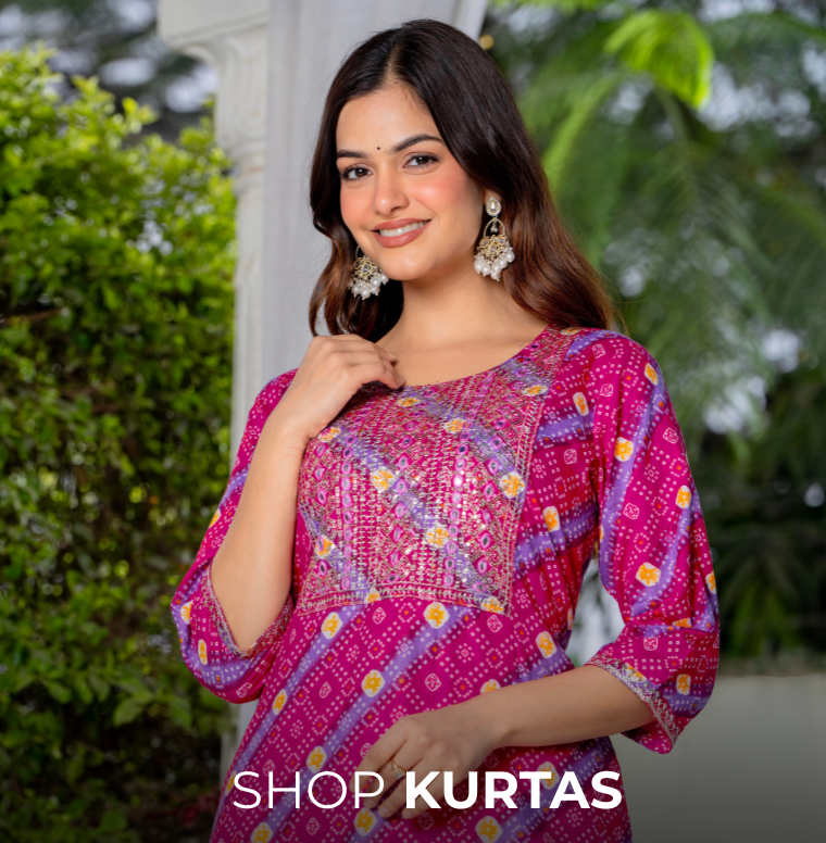Pink Bandhani Printed Straight Kurti with Embroidered Neckline – Traditional Ethnic Wear